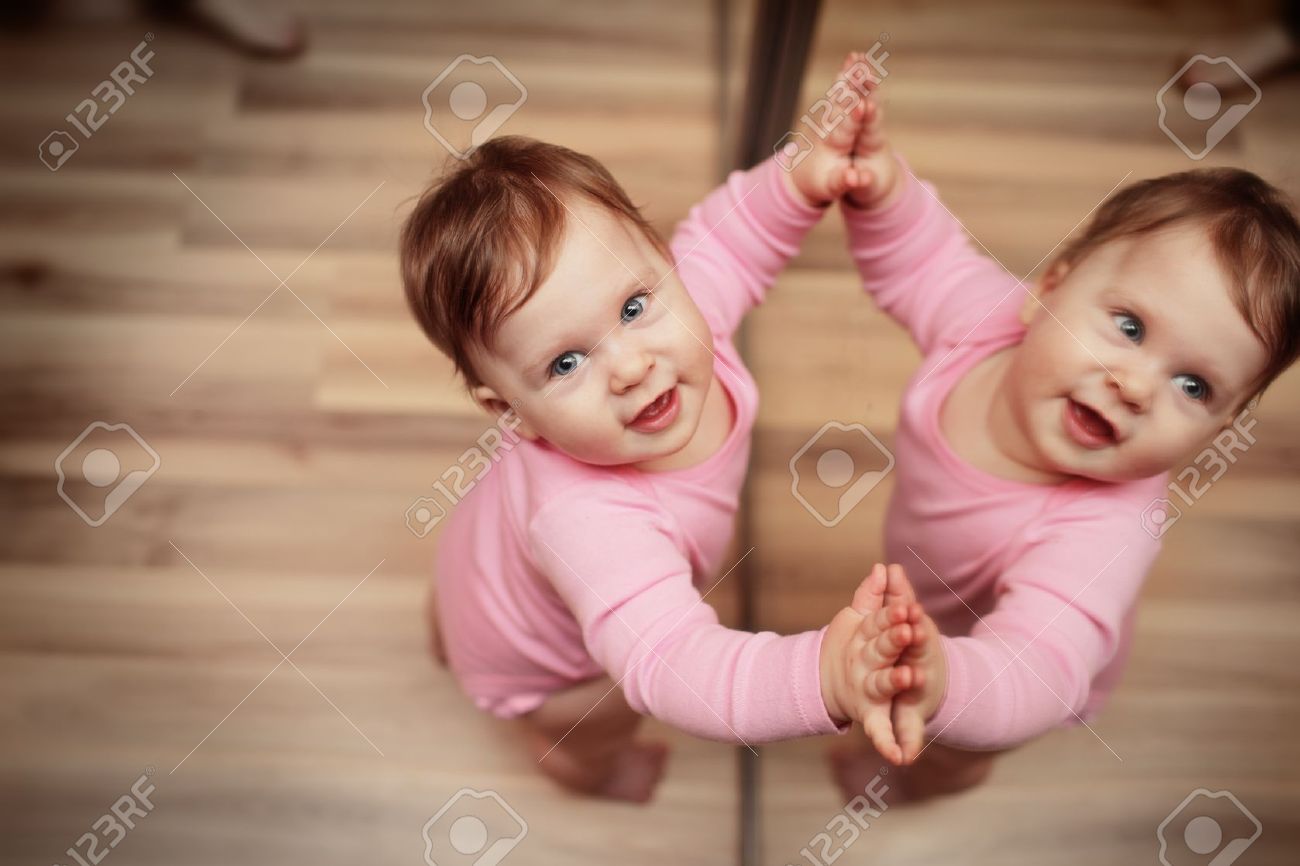 Observo y descubro: sienta al bebe frente a un espejo, tócale y nombrale diferentes partes de su cuerpo, para que se familiarice con ellas.